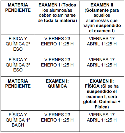 RECUPERACIÓN DE MATERIAS PENDIENTES DE